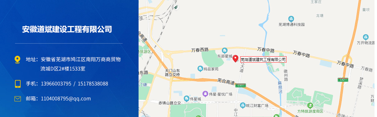 - 安徽道斌建設(shè)工程有限公司成立于2018年4月,主要從事工程施工、工程勞務(wù)、鋼結(jié)構(gòu)施工、市政公用施工,市政施工總承包貳級、地基基礎(chǔ)工程專業(yè)承包貳級、防水防腐保溫工程專業(yè)承包壹級、鋼結(jié)構(gòu)工程專業(yè)承包貳級、建筑裝修裝飾工程專業(yè)承包貳級、建筑工程施...
